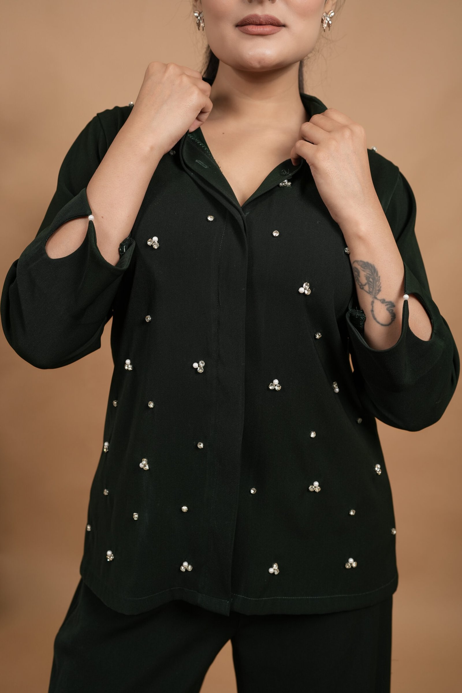 Dark Green Embellished Co-ord Set